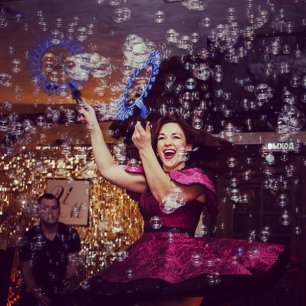 Также любителям оригинальностей советуем обратить внимание на феерическое мыльное шоу. Удивительный мир мыльных пузырей и волшебные трюки с ними вызовут массу эмоций и понравятся не только самым маленьким гостям, но и взрослым. А особой изюминкой программы, например, может стать памятный поцелуй жениха и невесты внутри гигантского мыльного пузыря.