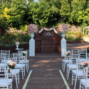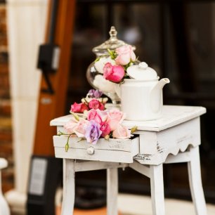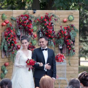 Прочая свадебная флористика должна гармонировать и с букетом невесты, и с декором свадьбы, её стилем и концепцией. К примеру, если вы делаете свадьбу в стиле рустик, то розы будут выглядеть здесь несколько странно. Но хороший флорист всегда найдёт выход и предложит вам альтернативу: если уж вы так хотите именно розы, то используйте в декоре кустовые, они очень мило смотрятся и не разрушат рустикальную тематику.
