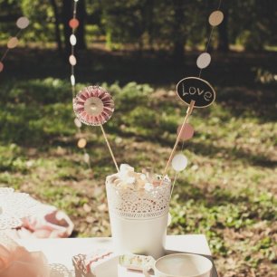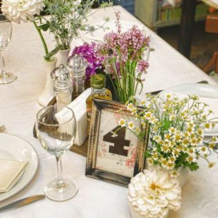Помните о том, что оформление свадеб возможно не только живыми цветами, которые порой стоят баснословно дорого. Сейчас существуют сотни вариантов украшения с использованием ткани, лент, мешковины, бумаги, деревянных спилов и прочих материалов. Самое главное, чтобы свадебный декор идеально соответствовал стилю и тематике вашего праздника, а из чего он будет выполнен, по сути, не так уж и важно.